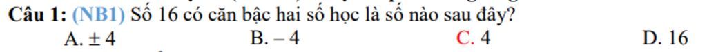Ta có `:sqrt{16}=(sqrt{4})^2 =4`