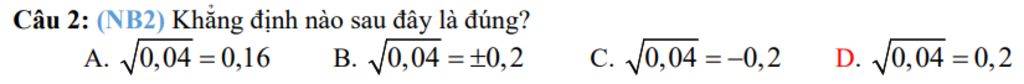 `->` `sqrt(0,04)=0,2` vì `0,2>0` và `0,2^2=0,04`