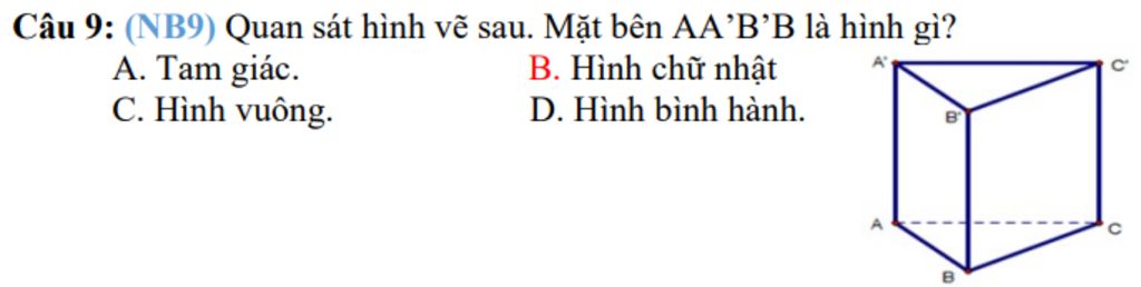 `->` Hình lăng trụ tam giác có mặt bên là hình chữ nhật