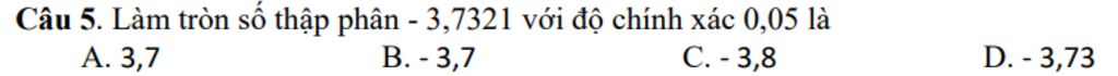 `@` Làm tròn số `-3,7321` với độ chính xác `0,05`