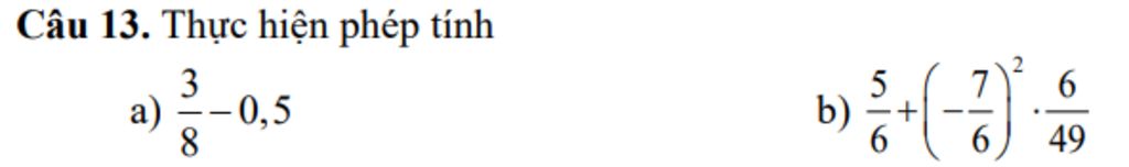 `b)` `5/6 + (-7/6)^2 . 6/49`