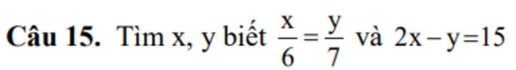 `x/6=y/7` và `2x-y=15`