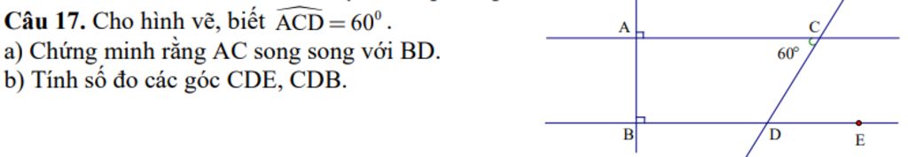 `=> \hat{ACD}=\hat{CDE}=60^o(2` góc so le trong `)`