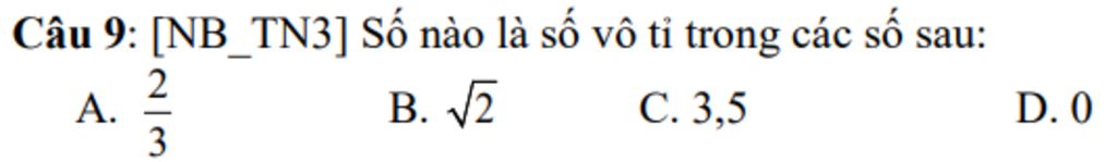 Câu `9: `Số nào là số vô tỉ trong các số sau: