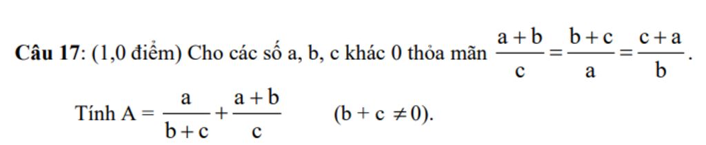`=> A = a/(b+c) + (a+b)/c = a/(-a) + (-c)/c = (-1) + (-1) = (-2)`