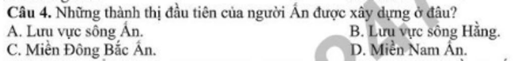 `=>` Những thành thị đầu tiên của người Ấn được xây dựng ở đâu?