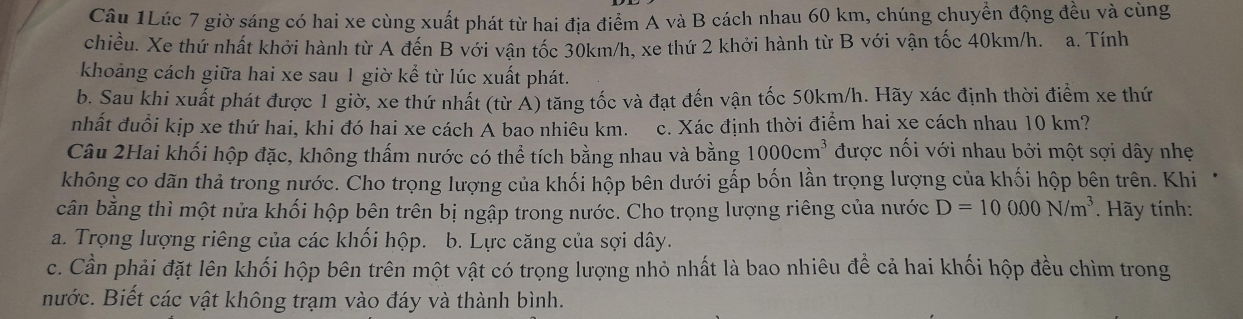 c gọi t¹ là thời điểm hai xe cách nhau 10km kể từ lúc hai xe đi được 1h khi đã gặp nhau(t¹>0)