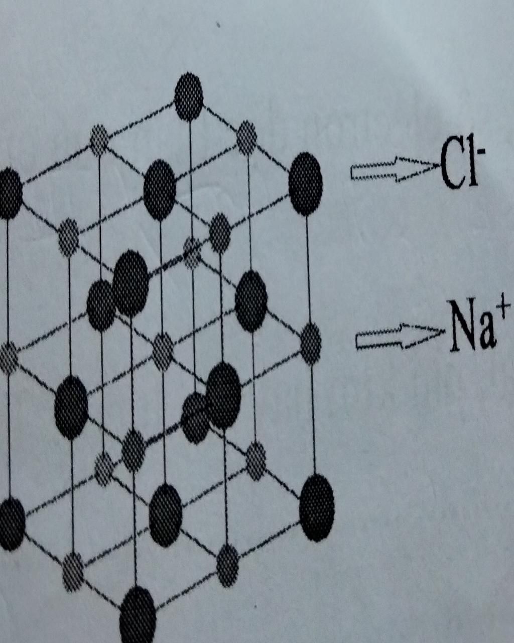 Hình dưới đây mô tả mô hình ô mạng tinh thể NaCl, giải thích vì sao bán kính ion Na+ nhỏ hơn bán kính ion Cl-?