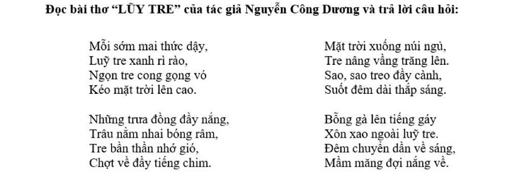 - Bài thơ là hình ảnh miêu tả cây tre ở vùng nông thôn hết sức bình dị, mộc mạc, chất phác. Chuyển từ hình ảnh "lũy tre" là hình ảnh "mầm măng" - tức những mầm non tương lai của đất nước đang dần phát triển, dần tiếp thu "nắng về", tức tri thức, bài học cuộc sống.