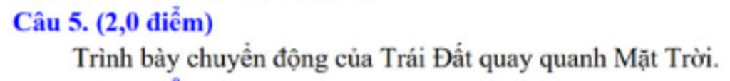 -Trái Đất chuyển động quanh Mặt Trời theo hướng từ Tây sang Đông trên quỹ đạo có hình elíp gần tròn