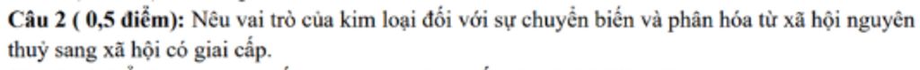 *Nêu vai trò của kim loại đối với sự chuyển biến và phân hóa từ xã hội nguyên thuỷ sang xã hội có giai cấp.