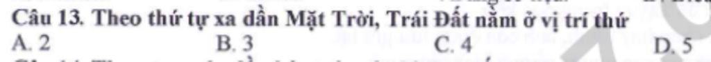 theo thứ tự xa dần khỏi mặt trời, trái đất ở vị trí số 3 được nhiệt độ vừa đủ của mặt trời