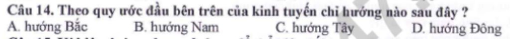 Câu 14. Theo quy ước đầu bên trên của kinh tuyến chỉ hướng nào sau đây ?