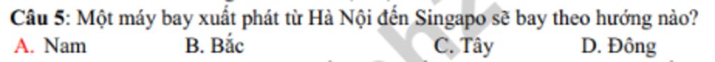 ***` Một máy bay xuất phát từ Hà Nội đến Singapo sẽ bay theo hướng Nam
