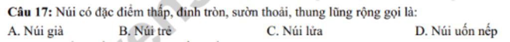 Núi có đặc điểm thấp, đinh tròn, sườn thoải, thung lũng rộng gọi là núi già