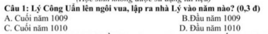 Lý Công Uẩn lên ngôi vua, lập ra nhà Lý vào cuối năm `1009`