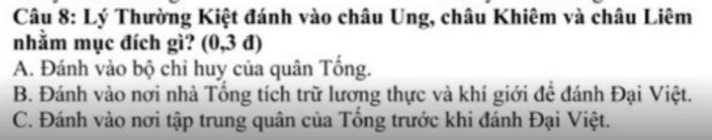 `->` Lý Thường Kiệt đánh vào châu Ung, châu Khiêm và châu Liêm nhằm mục đích đánh vào nơi nhà Tống tích trữ lương thực và khí giới để đánh Đại Việt.