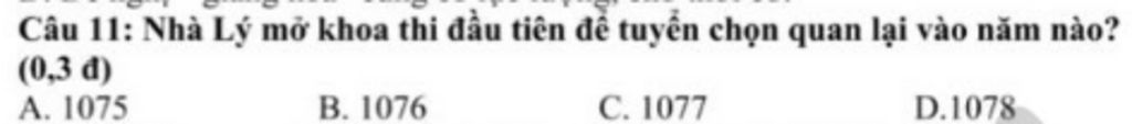 `-` Mùa xuân năm `1075`, nhà Lý mở khoa thi đầu tiên là Tam trường để tuyển chọn người tài giúp nước.