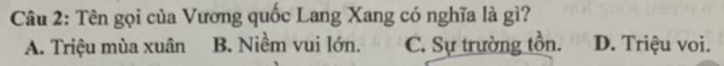 → Tên gọi của vương quốc Lang Xang có nghĩa là Triệu voi