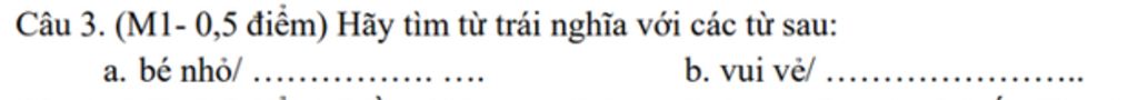 Câu 3: Từ trái nghĩa với các từ sau là: