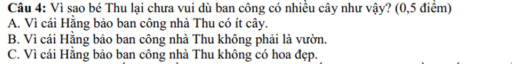 Trong bài Chuyện khu vườn nhỏ, cái Hằng đã nói rằng ban công không có chim về đậu là không phải vườn.