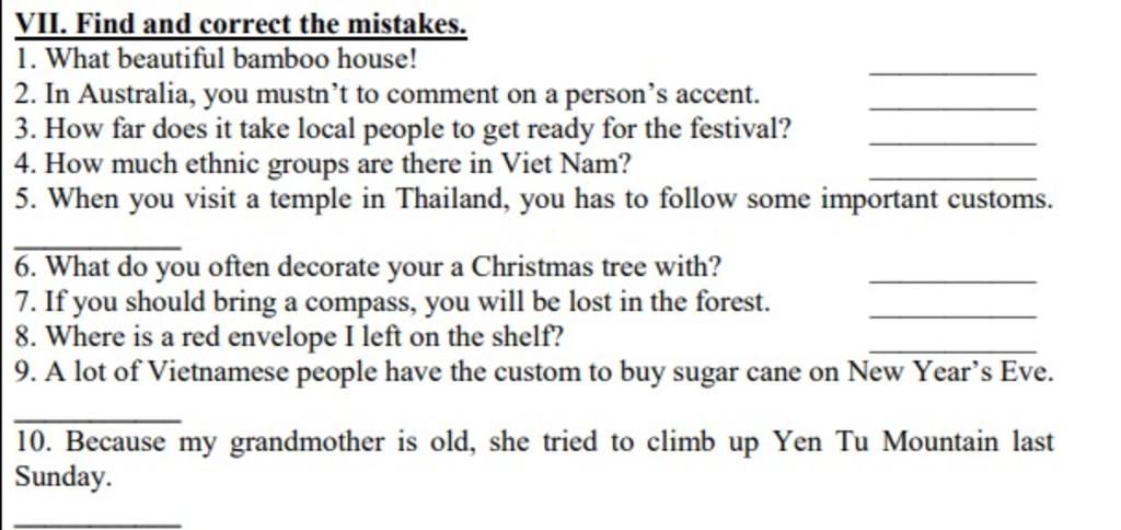 10. Because my grandmother is old, she tried to climb up Yen Tu Mountain last Sunday.