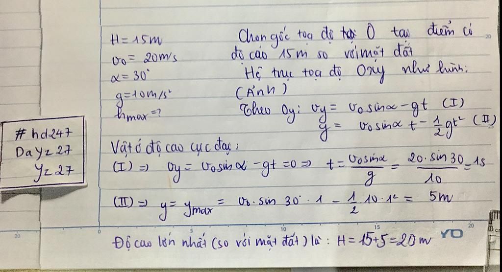Vậy độ cao lớn nhất vật đạt được là `20m`