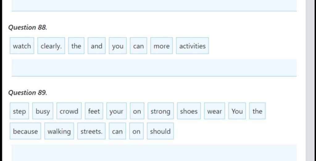 `89.` You should wear strong shoes because the crowd can step on your feet walking on busy streets.