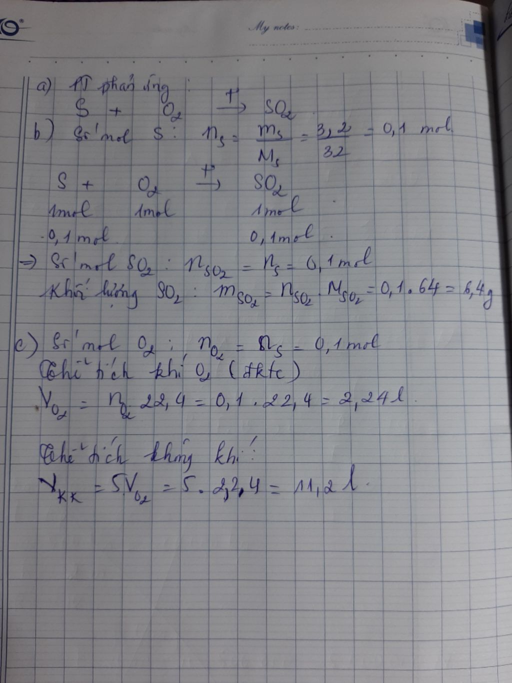 Câu 5: (2,5 điểm) Cho 3,2 g lưu huỳnh cháy trong không khí thu được khí sunfurơ (lưu huỳnh đioxit).