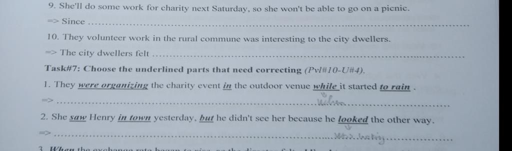 9. Since she'll do some work for charity next Saturday, she won't be able to go on a picnic