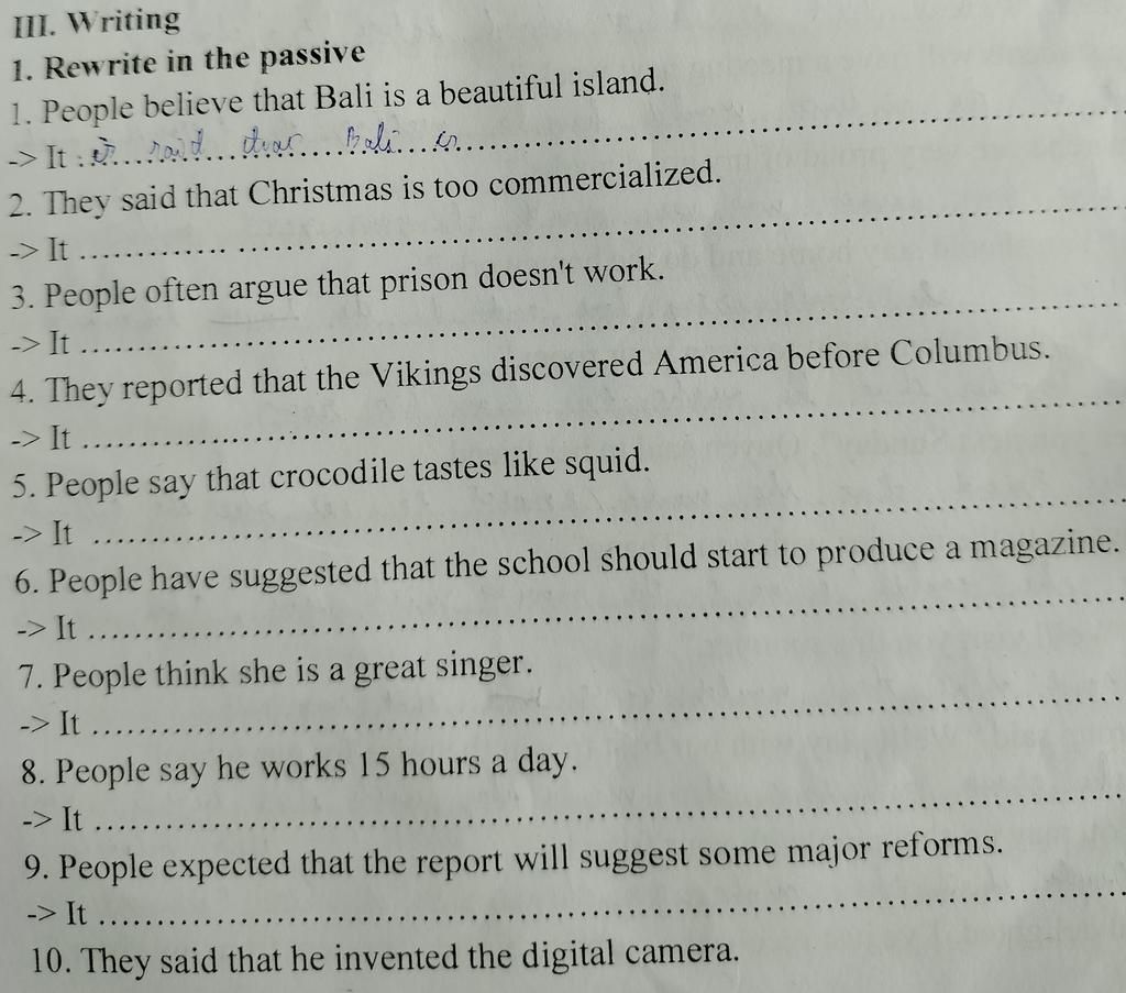 1. It is believed that Bali is a beautiful island.