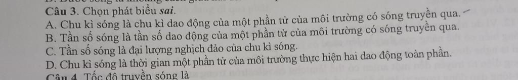 Câu 3. Chọn phát biểu sai.