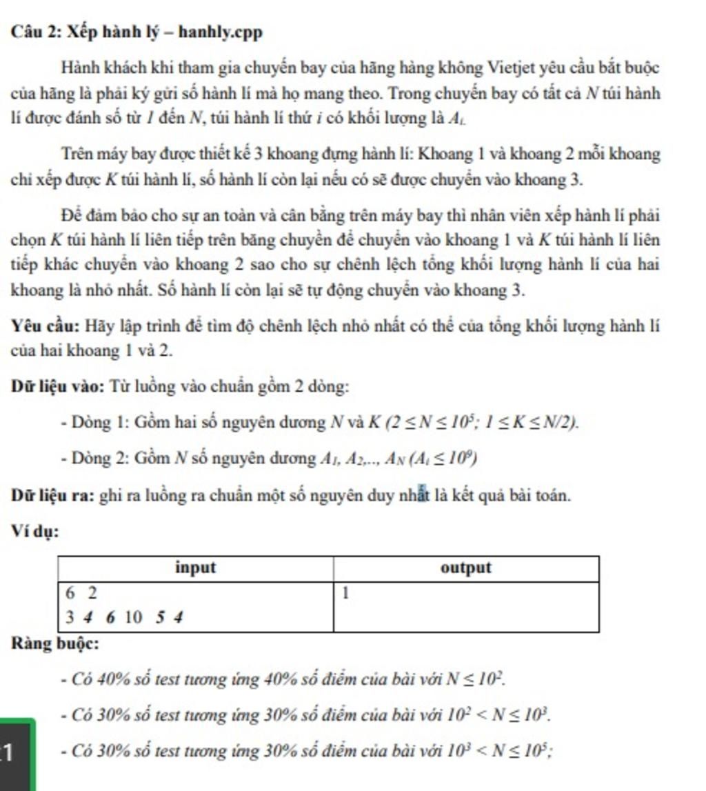 của hãng là phải ký gửi số hành lí mà họ mang theo. Trong chuyến bay có tất cả N túi hành