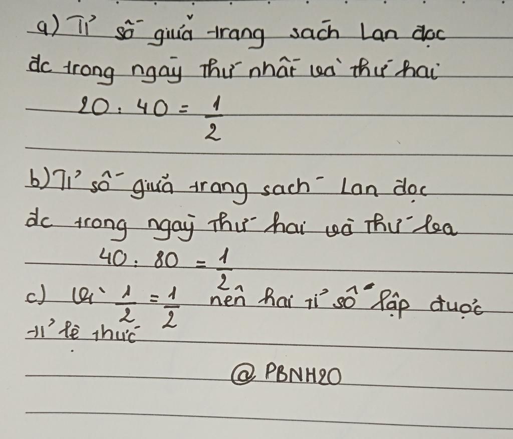 a) tính tỉ số giữa Trang sách lan đọc được trong ngày thứ nhất và ngày thứ hai
