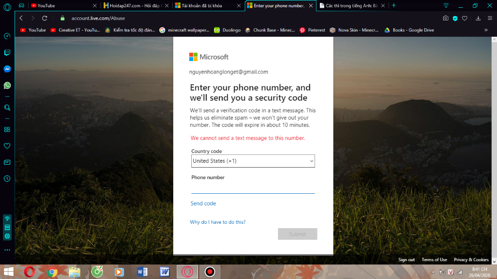 Hãy giúp cho tôi biết tài khoản Microsoft cho nguyen02013@outlook.com tài khoản bị khóa trên Microsoft cho số điện thoại trên tài khoản bị khóa