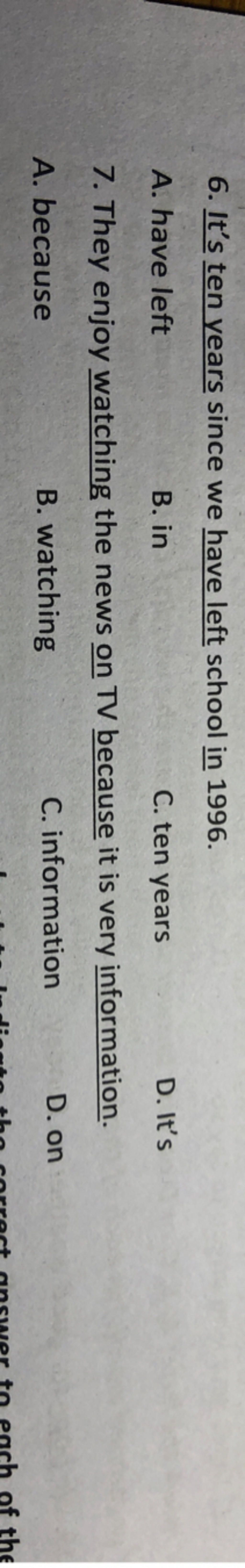 6. It's ten years since we have left school in 1996.