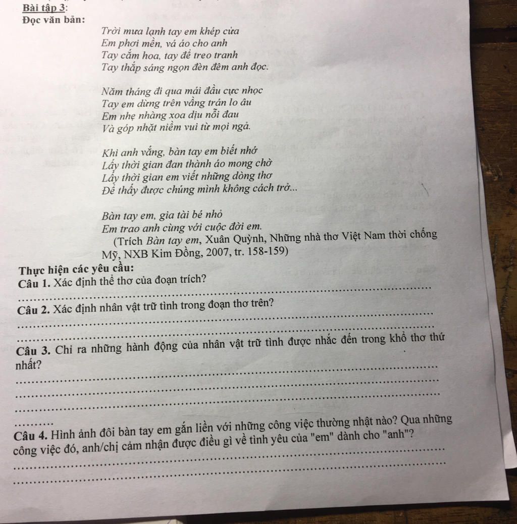 Hình ảnh đôi bàn tay của "em" gắn liền với những việc làm thường nhật như: đan áo, viết thơ, khép cửa, phơi mền, vá áo cho chồng, cắm hoa, treo tranh, thắp đèn đọc sách cho chồng