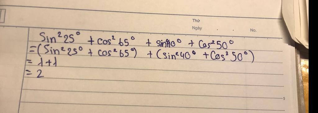 sin^2 25 + cos^2 65 + sin^2 40 + cos^2 50 = 1 + 1 + 1 + 1 = 4.
