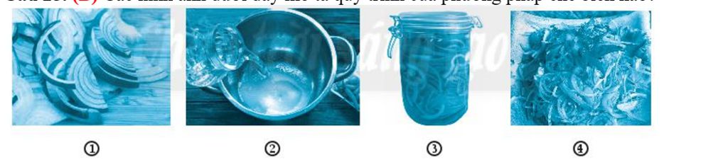 `+)` Hình `3` là bỏ thực phẩm và dấm vào lọ để ngâm