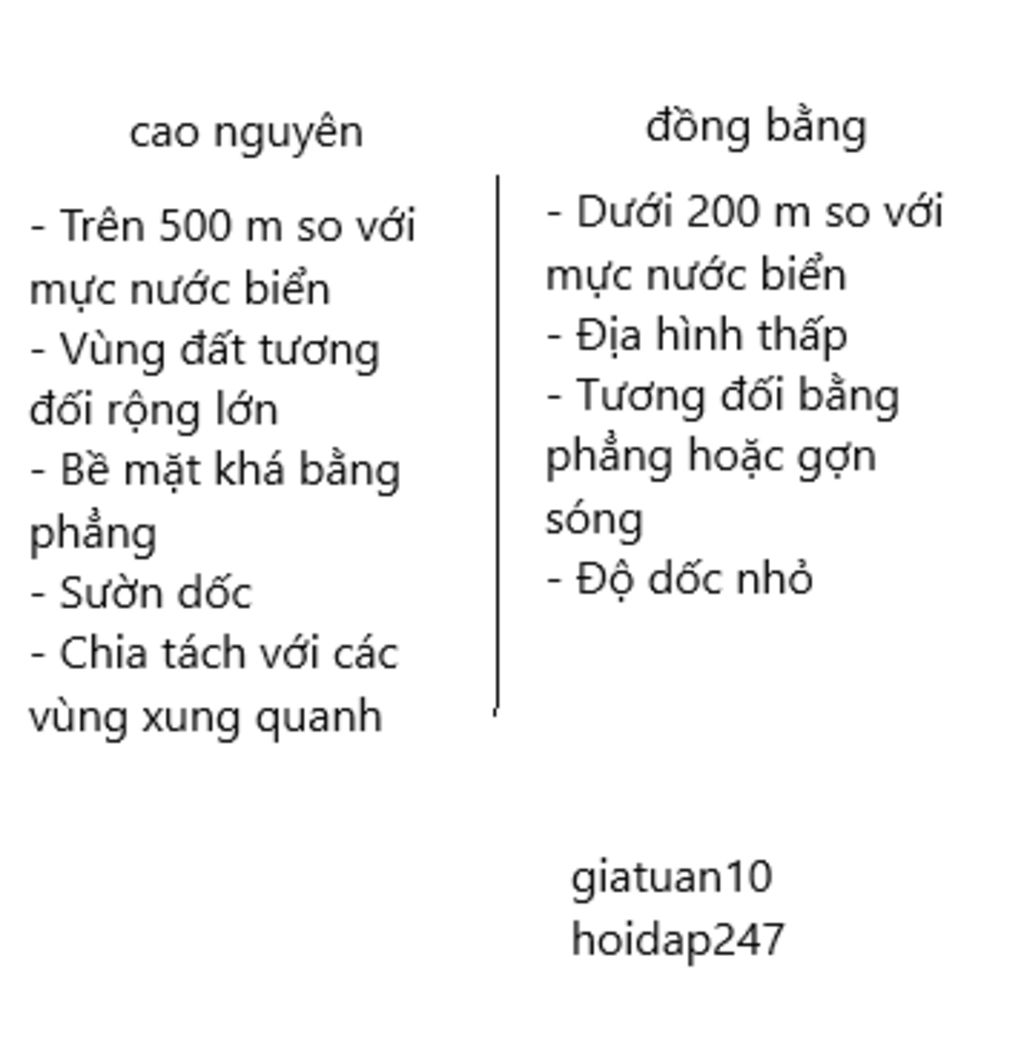 `@` Là dạng địa hình thấp, có bề mặt khá bằng phẳng hoặc gợn sóng, rộng. Cao trung bình dưới `200m` so với mực nước biển