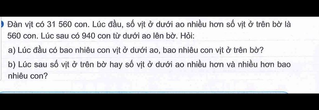 Đáp số: a) Số vịt trên bờ là: $15500 con$