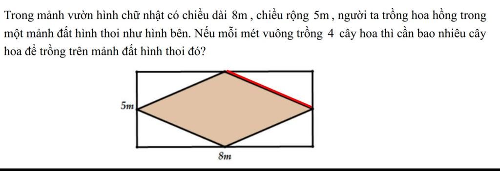 Trong mảnh vườn hình chữ nhật có chiều dài 8m, chiều rộng 5m, người ta trồng hoa hồng trong
