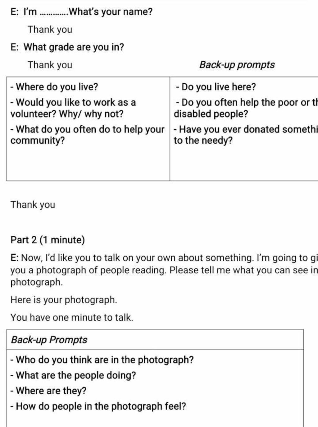 E: I'm ..............What's your name?