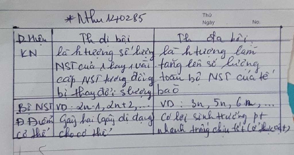 +đột biến số lượng NST gồm thể đa bội ,thể dị bội
