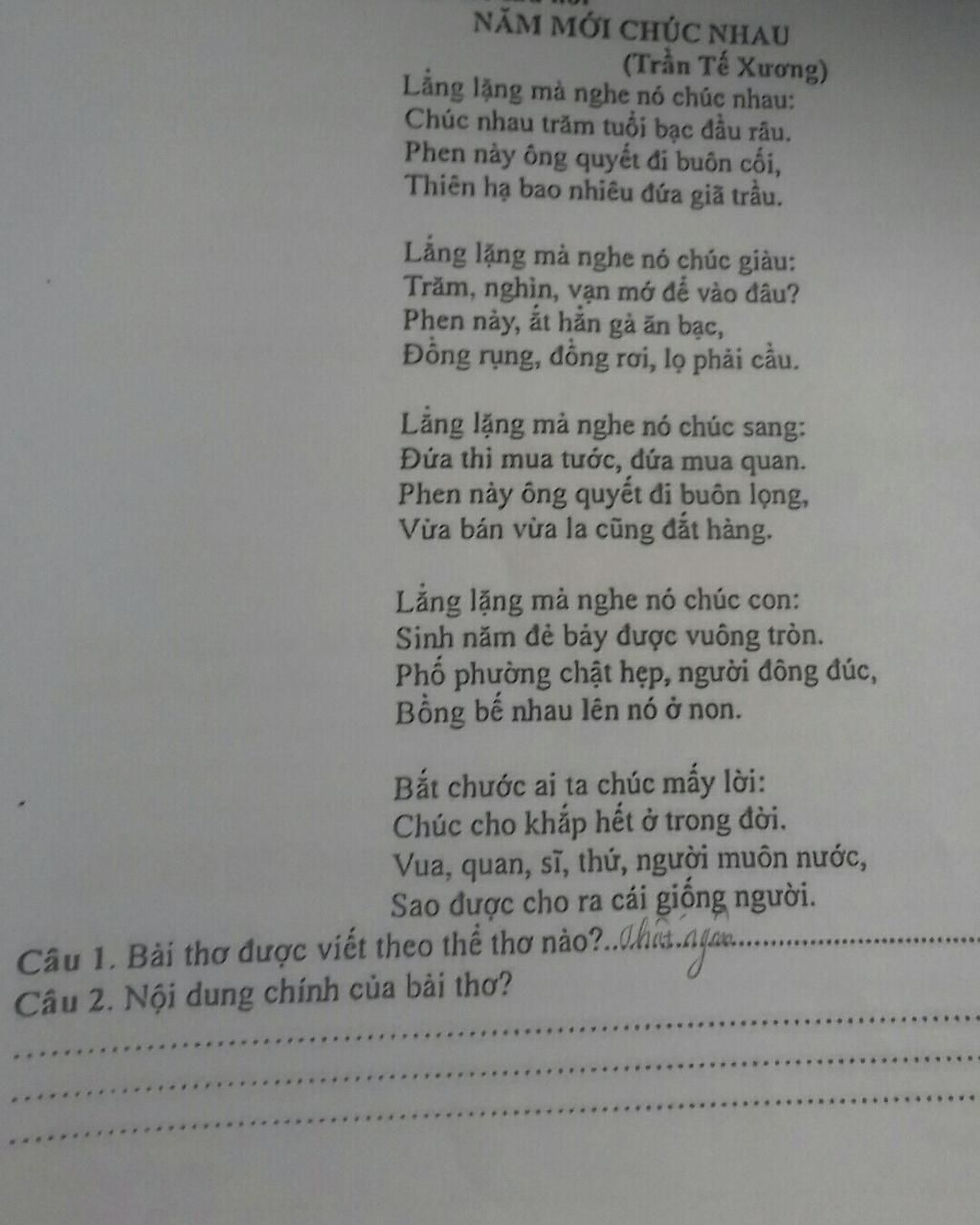 1, thể thơ 7 chữ