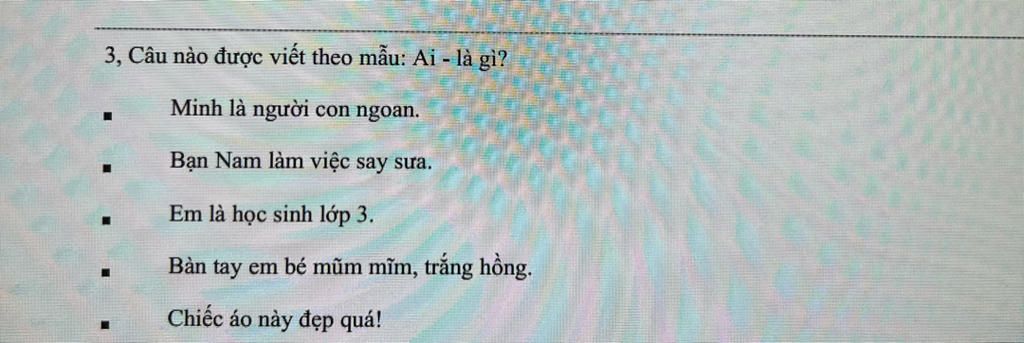Câu "Minh là người con ngoan" và "Em là học sinh lớp 3." Là câu Ai-là gì trong câu hỏi này.