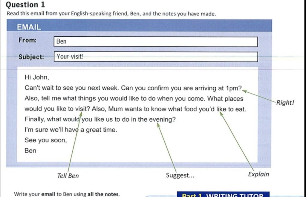 It was great to hear from you. I'm really looking forward to see you next week. That's right! I will be there at 1 p.m. About places, I would like to go to visit the museum,beach that we went last year.Do you like this idea? As the food, I would like to eat fried chicken and fried frog because I very like it and some ice-cream to cool. Finally, in the evening I would like to play computer game with you or play basketball in backyard.