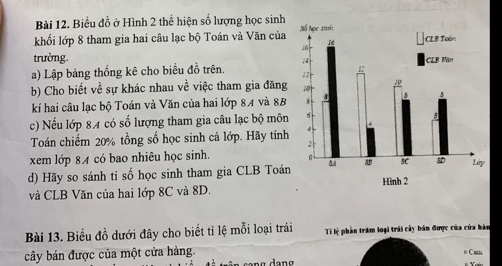 Bài 12. Biểu đồ ở Hình 2 thể hiện số lượng học sinh