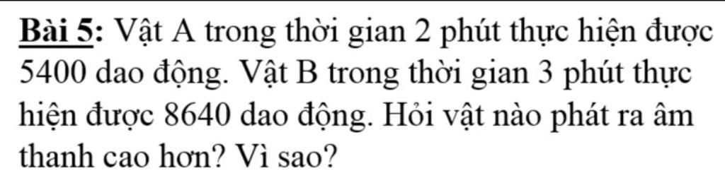 - Vì $f_{B}$ > $f_{A}$ ( 48 Hz > 45 Hz ) nên vật B phát ra âm cao hơn vật A
