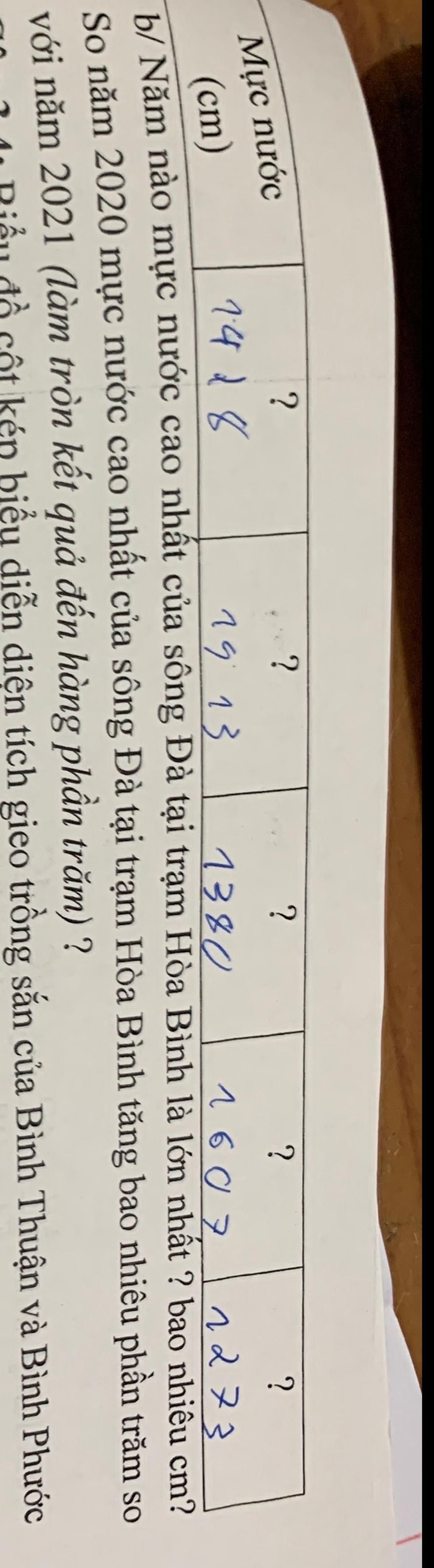 b/ Năm nào mực nước cao nhất của sông Đà tại trạm Hòa Bình là lớn nhất ? bao nhiêu cm?